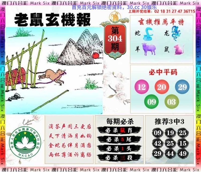 305期九肖:鸡羊狗蛇猴龙兔猪鼠